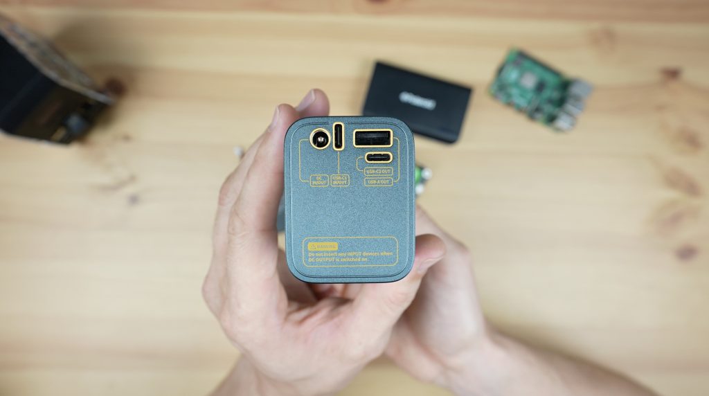 The Storm 2’s type A port can do 18W, so we should be able to power the Pi from that port without any issues but it also has two USB type C ports which both support power delivery. The one marked C1 can do up to 100W and the one marked C2 can do up to 30W. I’m going to use the Storm 2’s included USB C cable to power the Pi using the lower-powered USB C port.