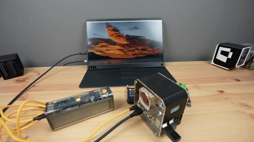 We’ve got a lot of capacity available, so let’s try to hook up the portable monitor to the Storm 2 as well so that our whole setup is running from the power bank.