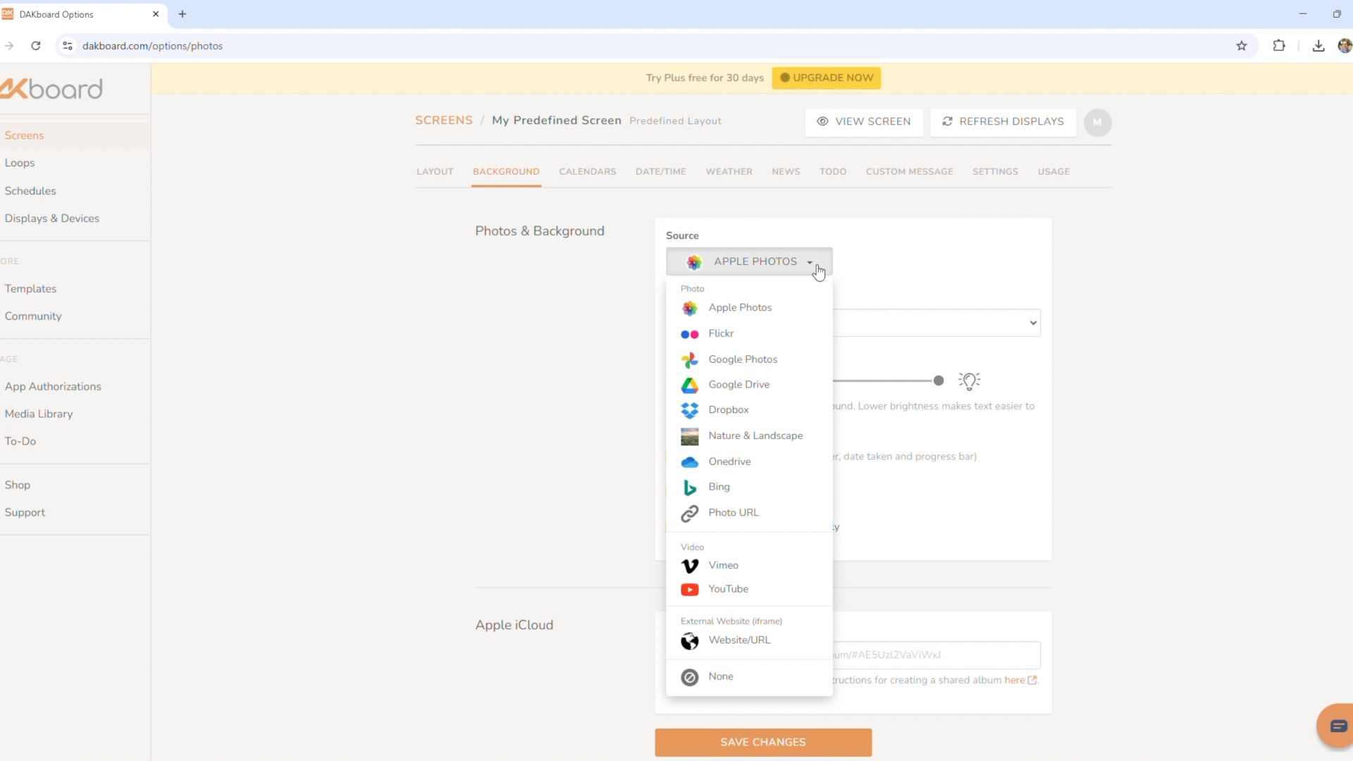 Dakboard Background Setup