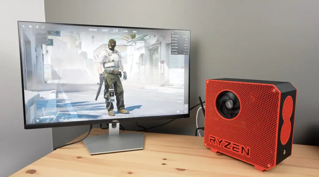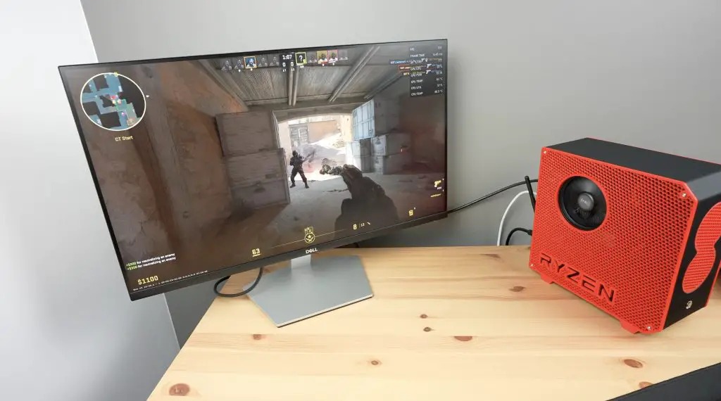 Running Counterstrike 2 at 1080P with all settings on Very High, we get between 150 and 200 fps. This is pretty good for this size computer. The power draw is also a little under 180W.