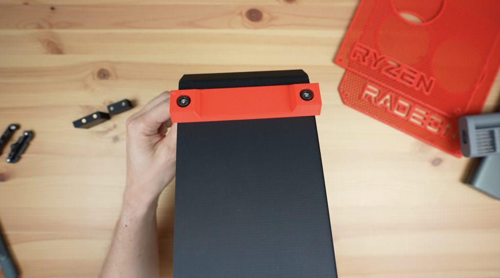 The back has cutouts for the power supply, motherboard IO shield and the GPU. The GPU mounting arrangement is a little bit unconventional as the case already takes up the whole print bed, so there is a small bracket that will need to be screwed onto the back of the case during assembly. I’ve also added some legs that screw onto the underside of the case.