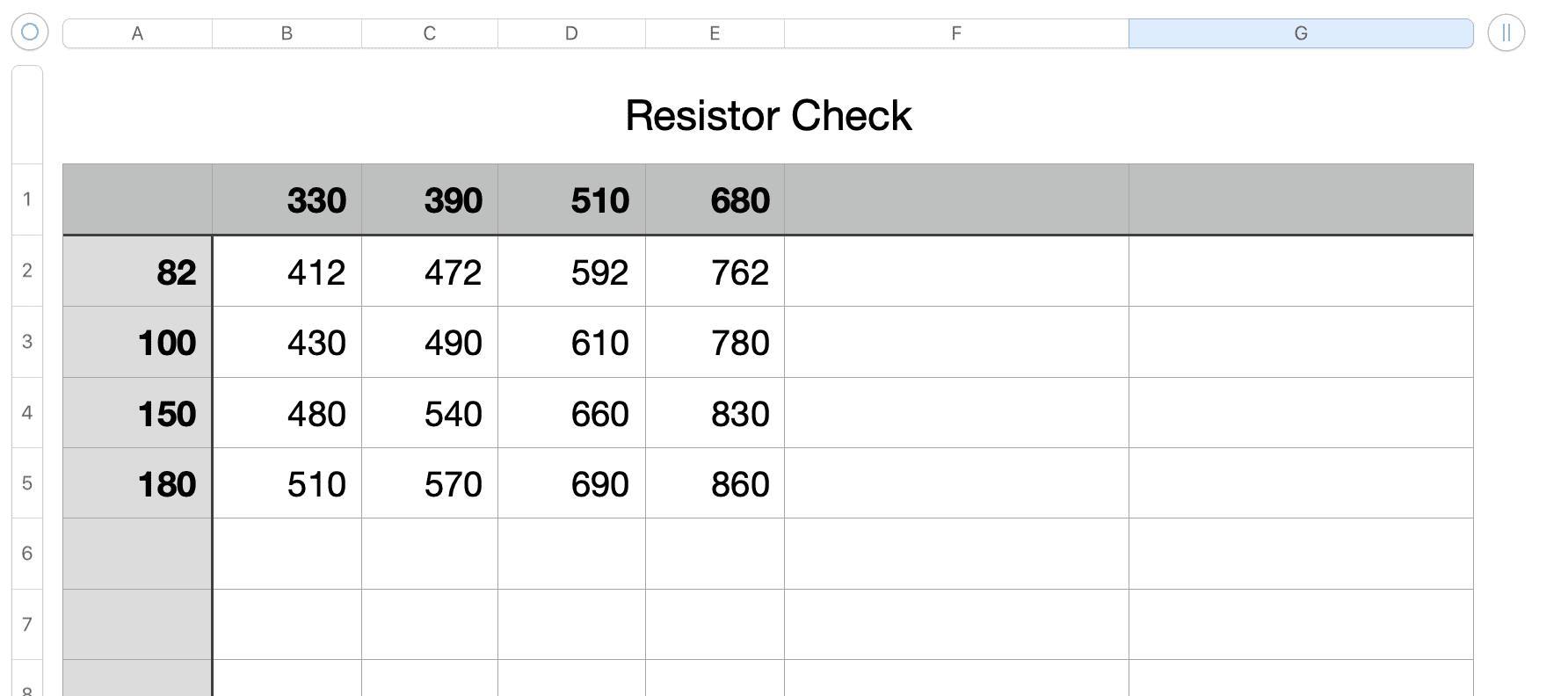 I think you can make the values more distinct if the resistors are 47, 100,150 and 220 for the row and 270,470,680,910 for the columns with the ‘top’ resistor set to 680 Ohms. The differences between readingsappear to be a maximum when the top resistor is set to the average of all the sums of the bottom resistors.