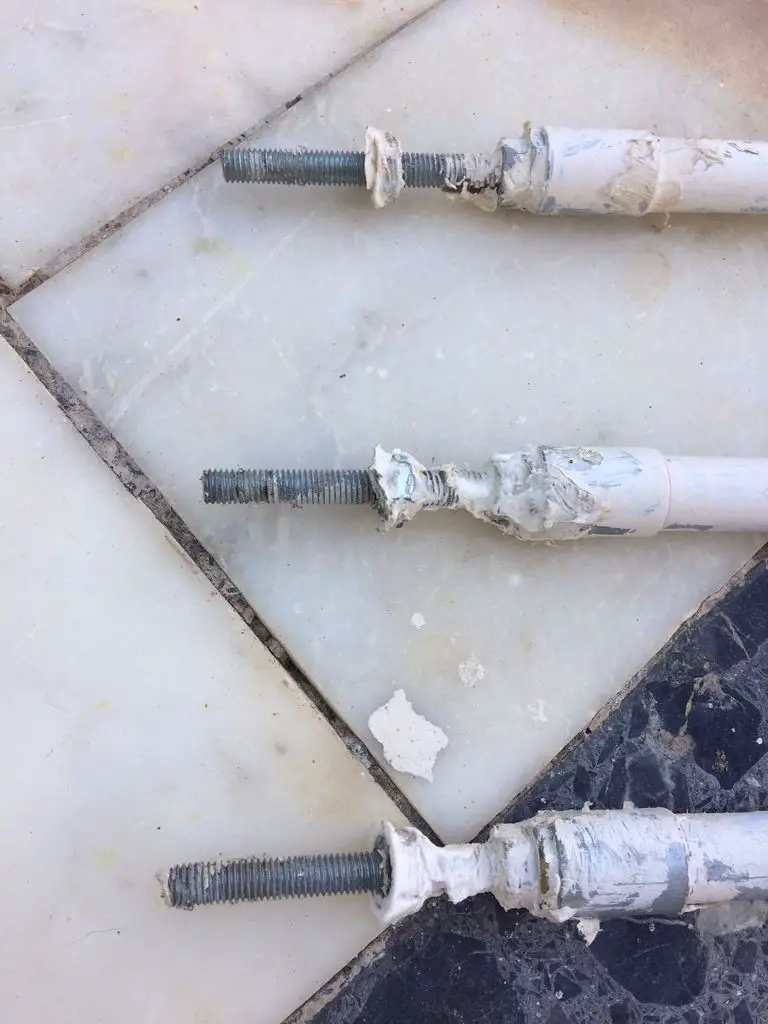 add threaded rods to the ends of the pipes