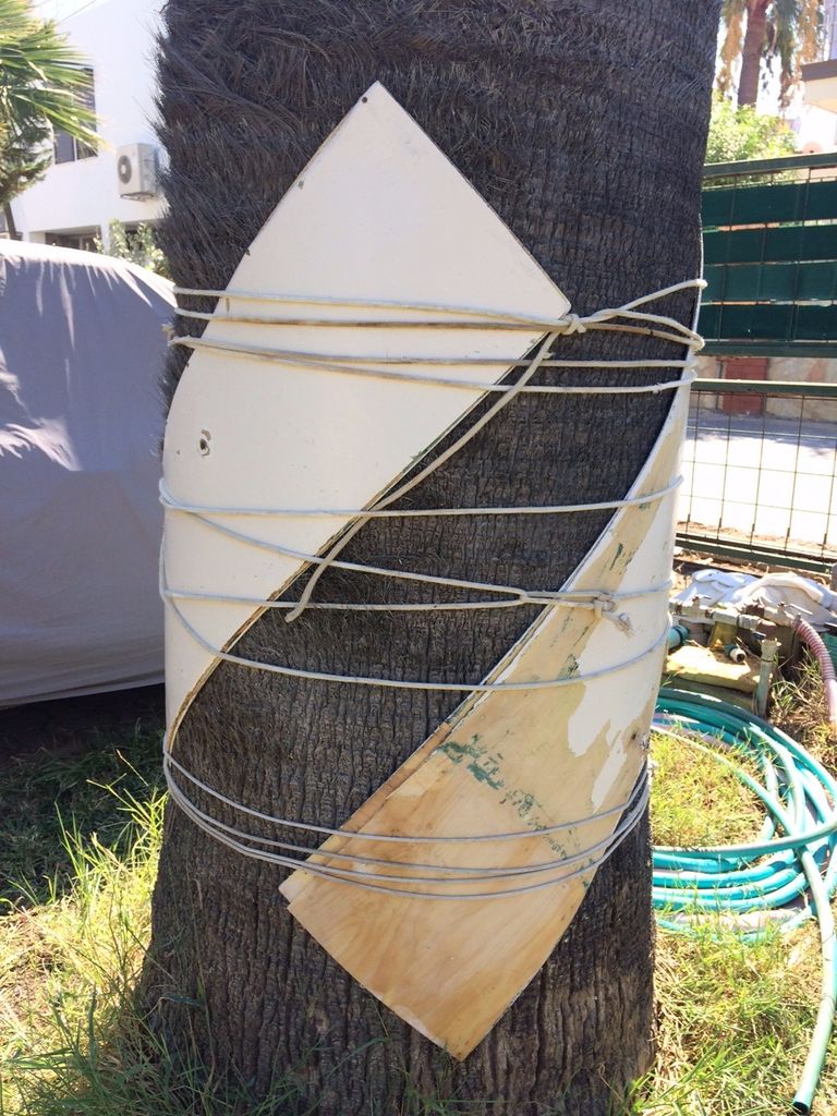 tie the plywood around a tree trunk