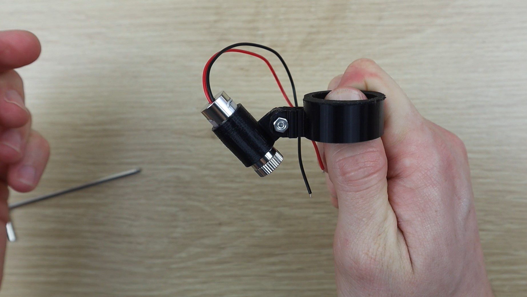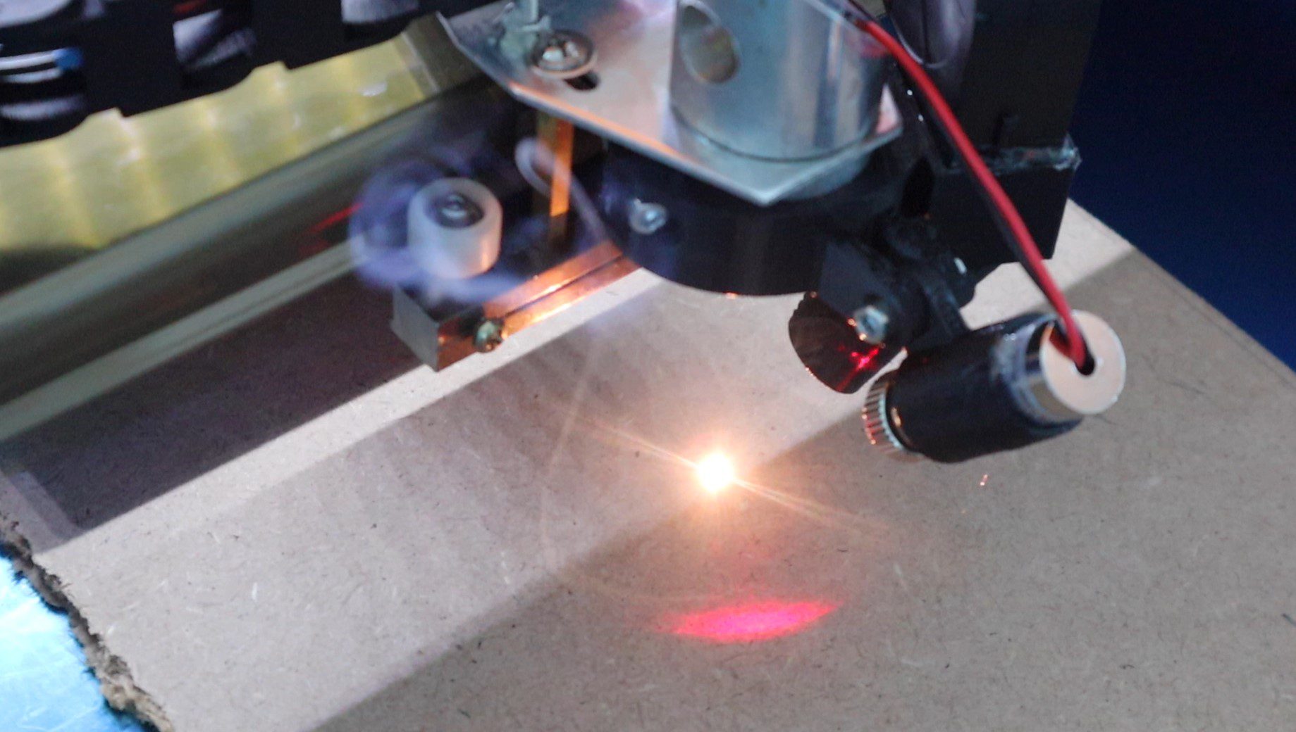 I wanted the red dot laser pointer to be adjustable so that you can make changes to the dot position for different thickness materials and different focal points on a range of lenses.