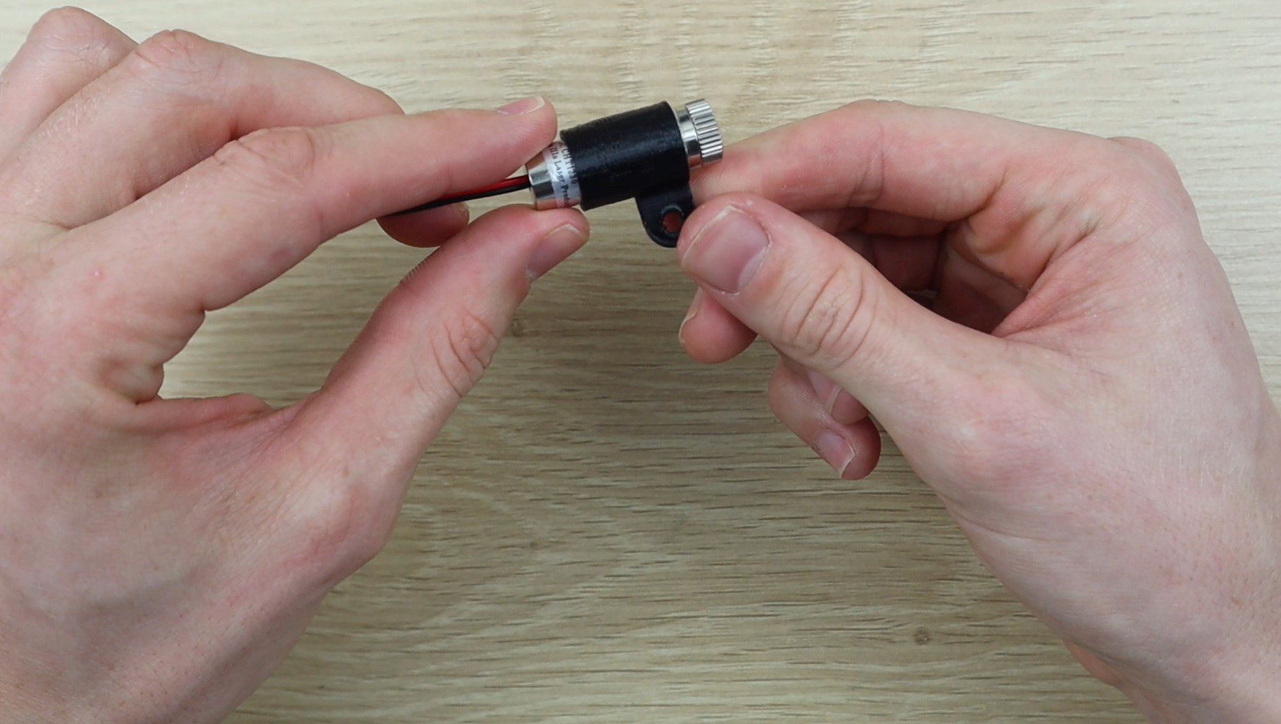 For the red dot pointer, I chose to use one of these focusable 5mW 5V laser pointers which are available from a range of online stores. They’re low power and have an adjustable focus ring on the end to accurately focus the pointer.