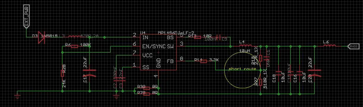 Secondly, I added another MP1496DJ-LF-2 DC-to-DC chip to power the servos. The MVCC net is only for the servos and would not affect the system power supply.