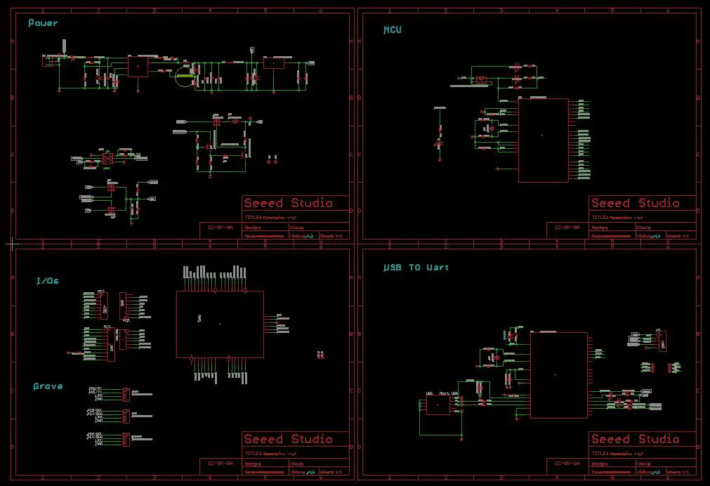 Thanks to the open source EAGLE platform, I don’t have to design the board from scratch, I can choose a similar design and modify it to suite my requirements. I decided to design my Servoduino based on Seeeduino v4.2, which also has an ATmega328P and ATmega16u2 chip and is more stable than the Arduino UNO R3. I downloaded the schematic for the Seeeduino v4.2 from Seeed’s Wiki.