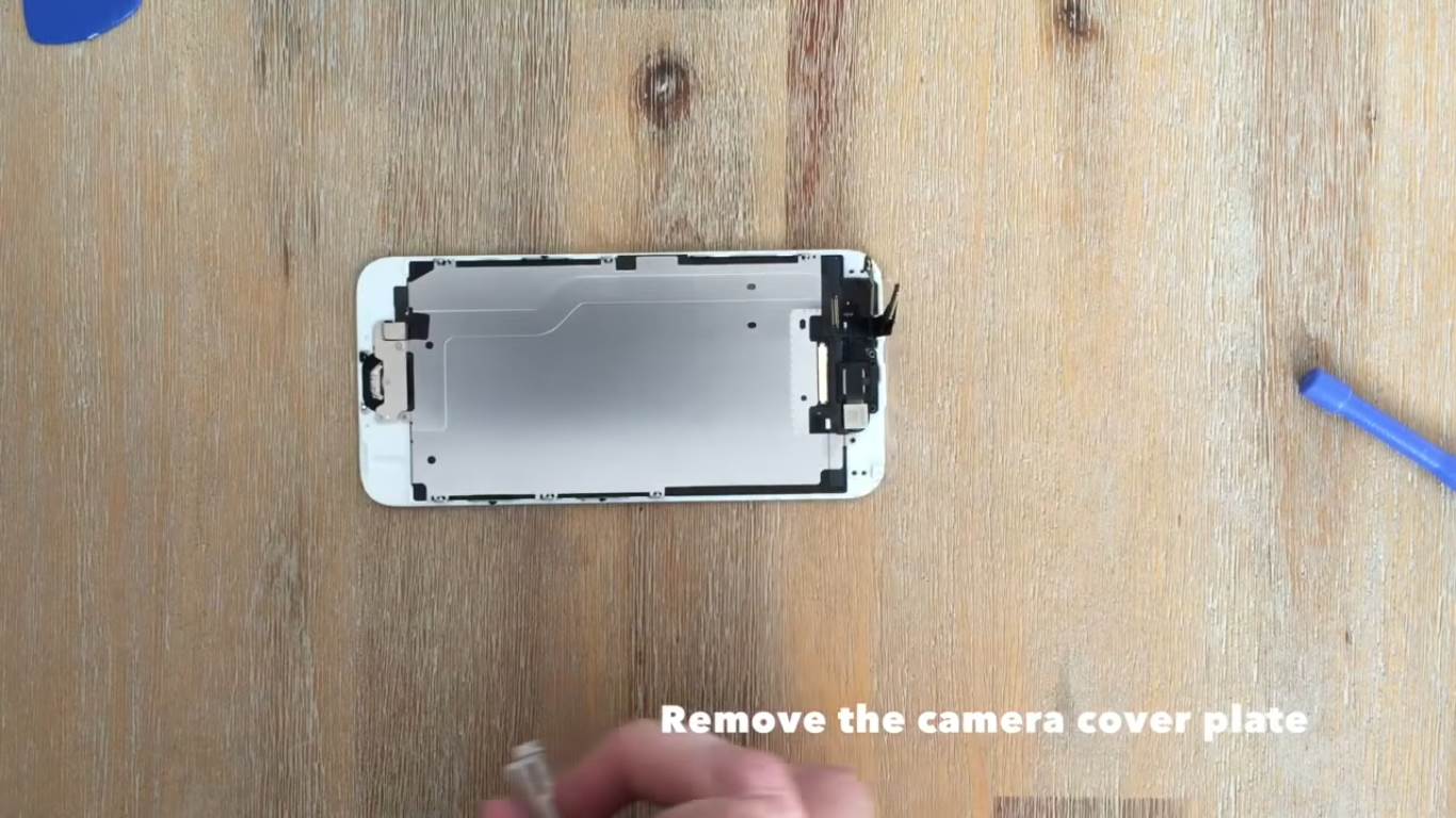 First start by removing the camera, sensor and earpiece. Remove the screws and cover plate which secure the camera.