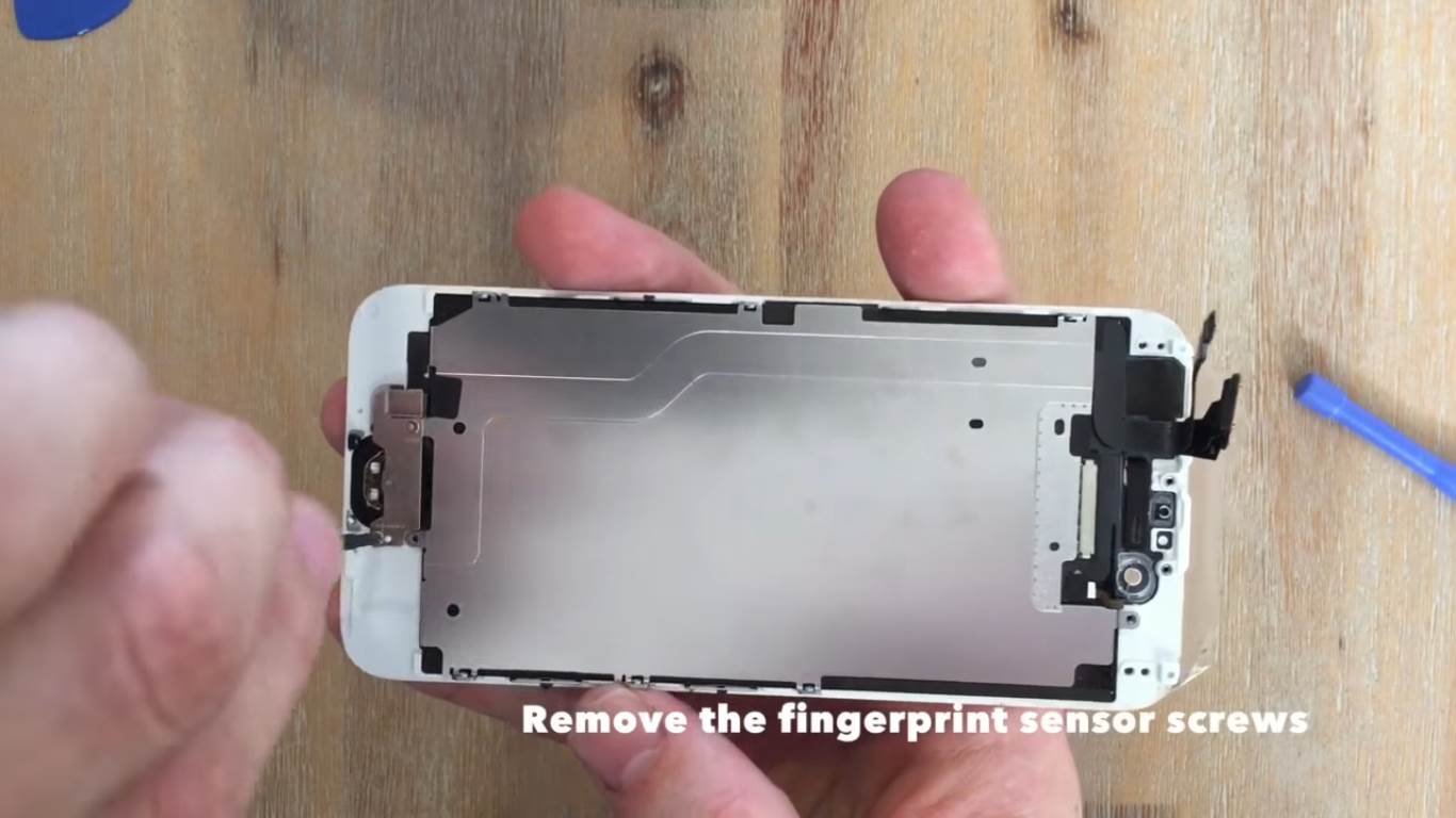 You need to remove the screws to the silver cover plate on the back, this houses the ribbon cable to the fingerprint sensor and home button. Remove the screws around the perimeter of this cover, the cover will remain in place until the fingerprint sensor is removed.