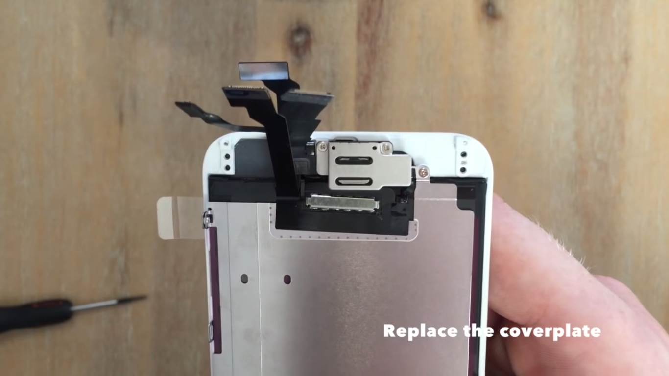 Replace the earpiece and then screw the silver cover plate back into place.