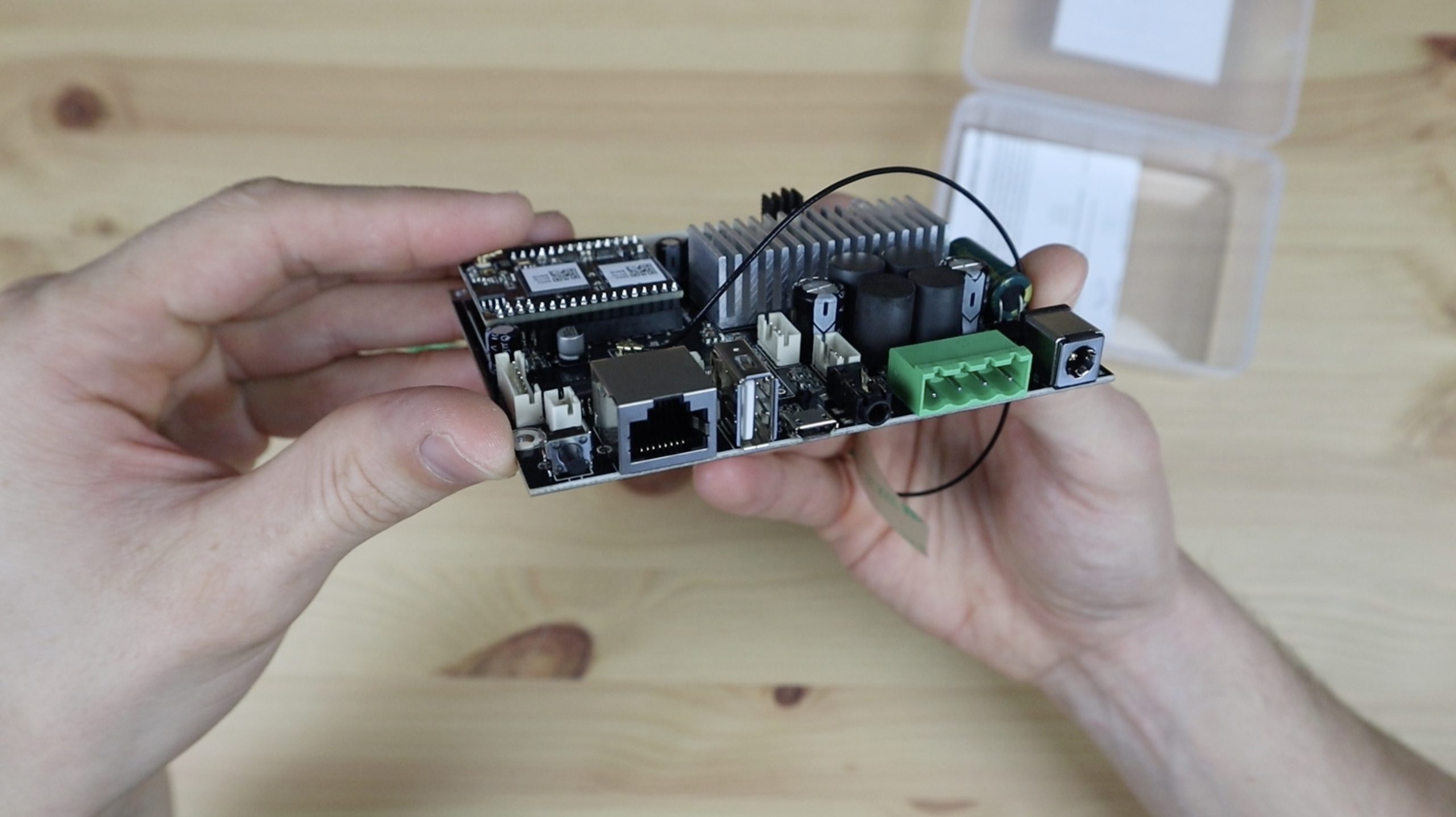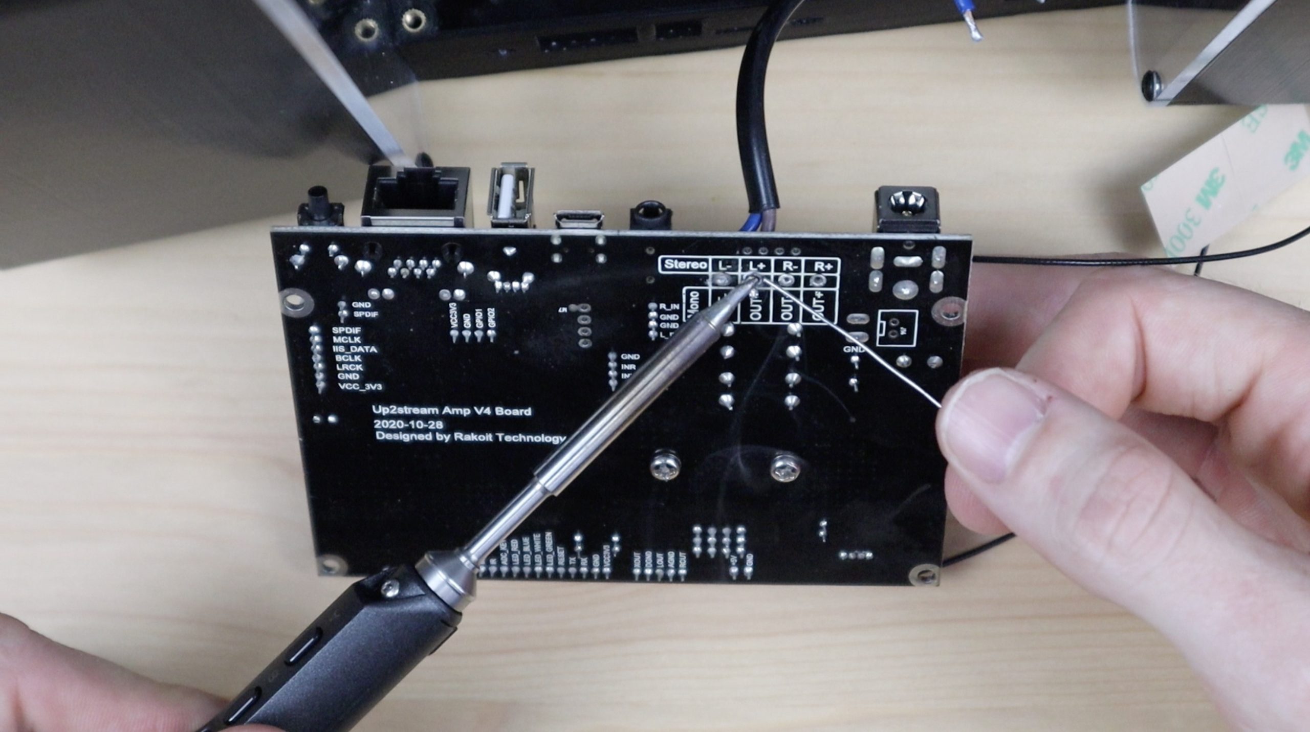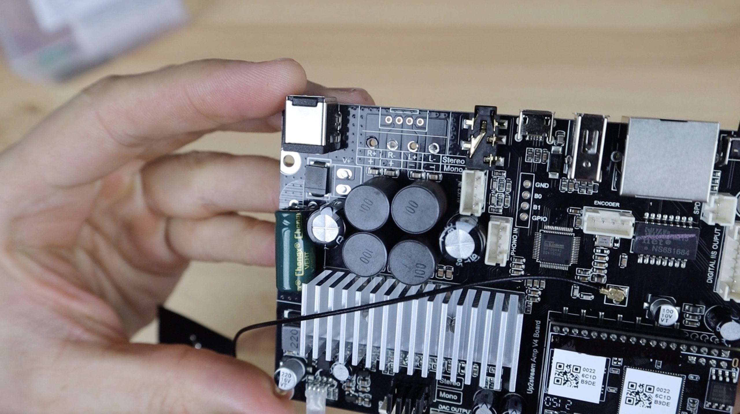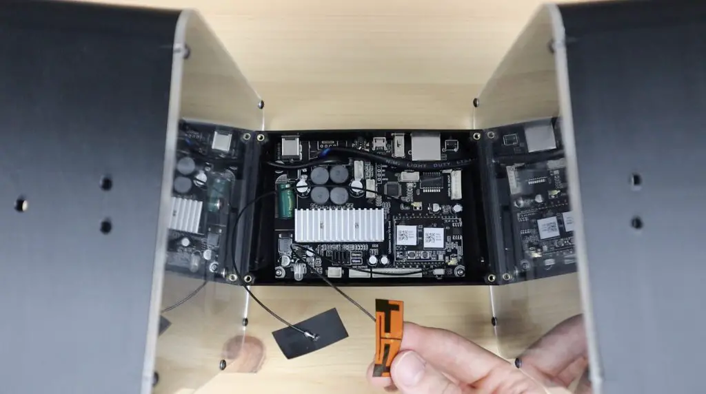 We also need to stick the WiFi and Bluetooth antennas onto the sides of the amplifier housing.